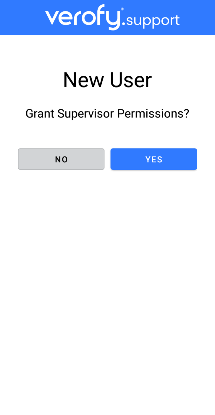 - You'll then be asked if you want this user ID to have supervisor permissions. If you select no, the user won't have access to Z reports or reconciliation report options, or the user mananger. Refunds require a supervisor login to proceed no matter what level of account a user has.