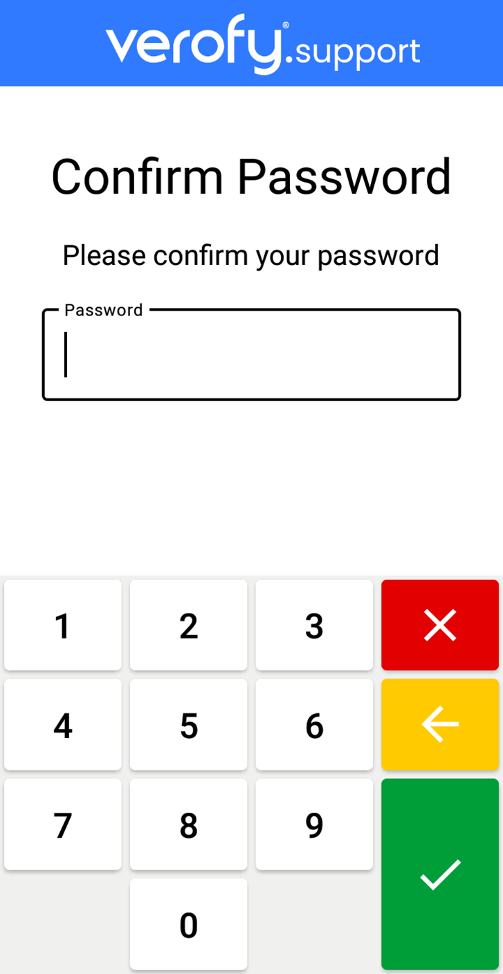- You'll then need to re-confirm the temporary password. Once entered, press the green tick.