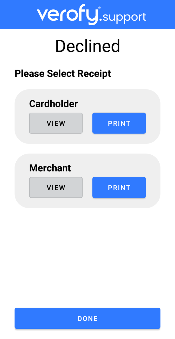When this is enabled, you'll be presented with the Print to Screen page after a transaction. It will look similar to the below depending on the result of the transaction.