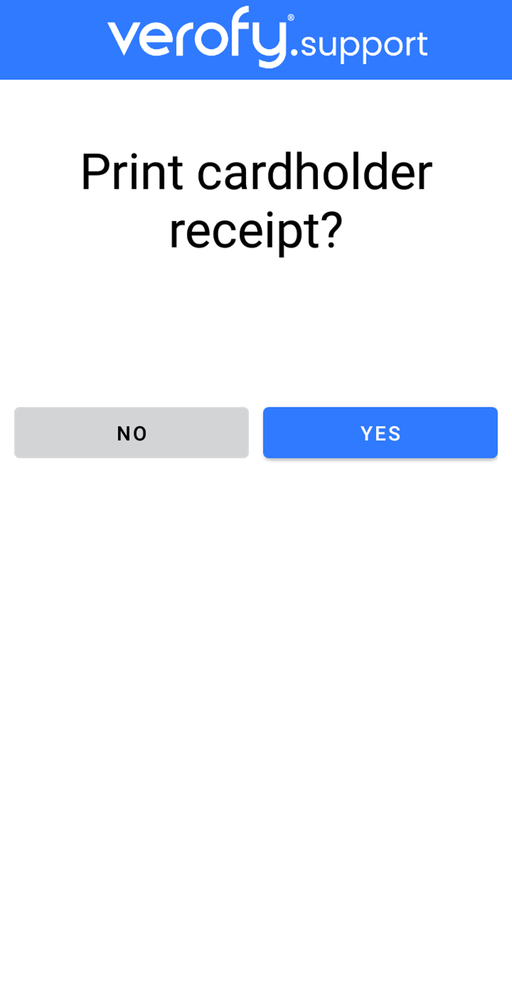 When this is enabled, the terminal will print the Merchant copy of the receipt automatically, and then provide the user with the following prompt on screen.