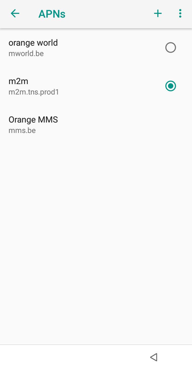 - You'll see a list of the Verofy® Move's default APNs. To add the APN you need, select the green + in the top right hand corner of your Verofy® Move.
