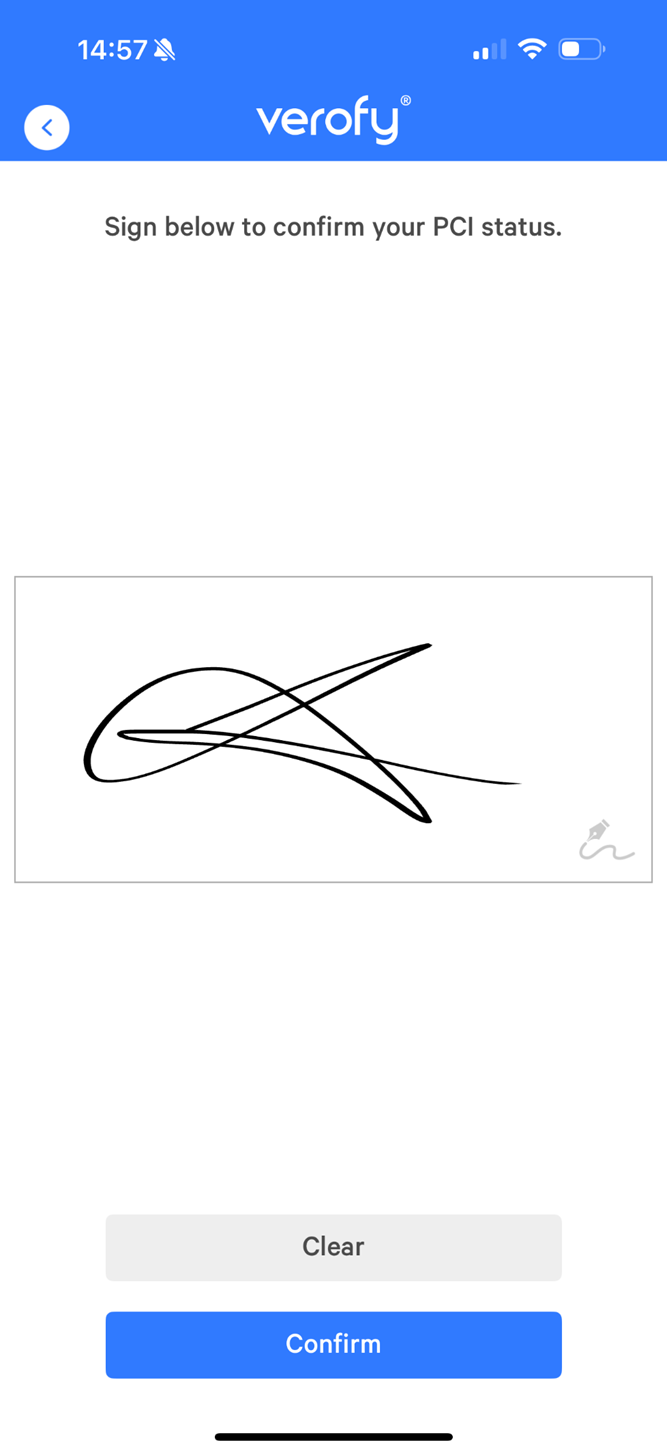 - If you select yes, you'll then be prompted to sign on the glass to confirm your PCI status. Once you're ready, press Confirm.