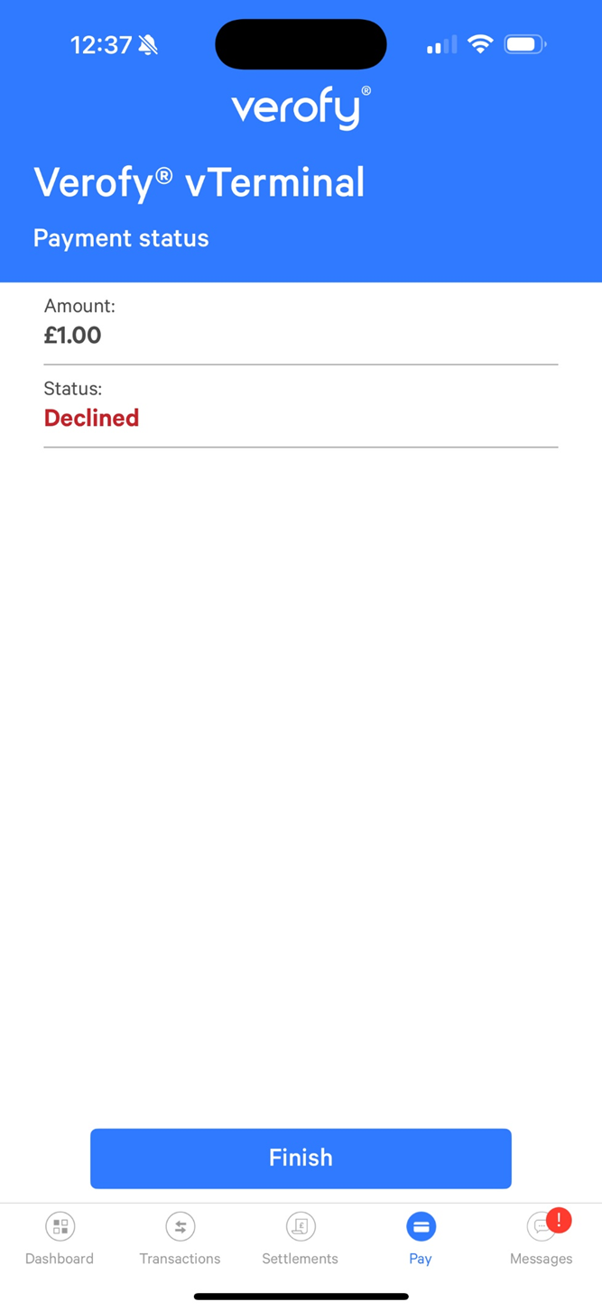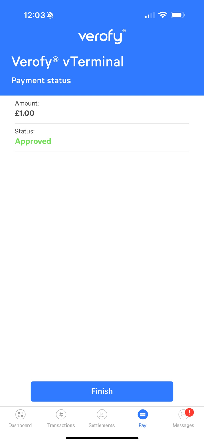 That's it! You've taken a payment in the Verofy® App via your Verofy® vTerminal.