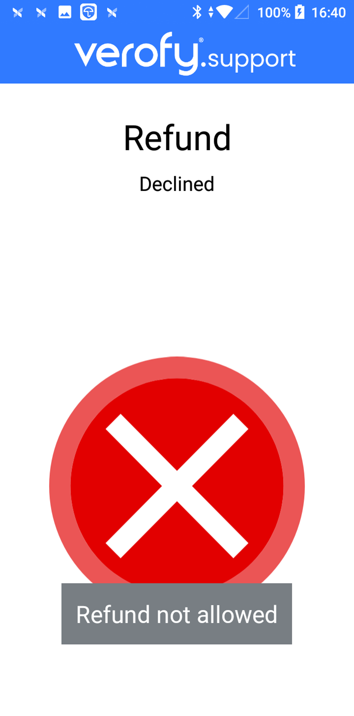 - If the amount of the refund entered is too high or the card presented does not match, you'll see the 'Refund Not Allowed' message and the 'Declined' screen. The refund will be cancelled and you'll need to start again.