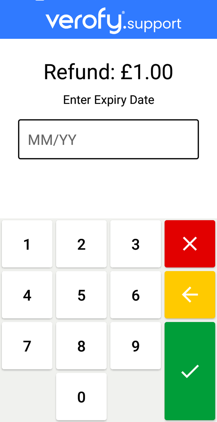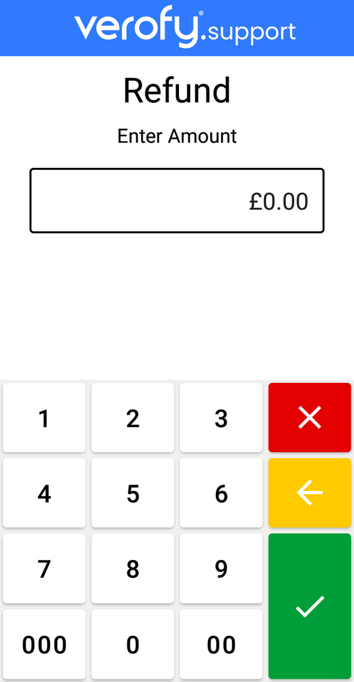 - Enter the amount of the refund using the keypad. When you've entered this, press the green tick.