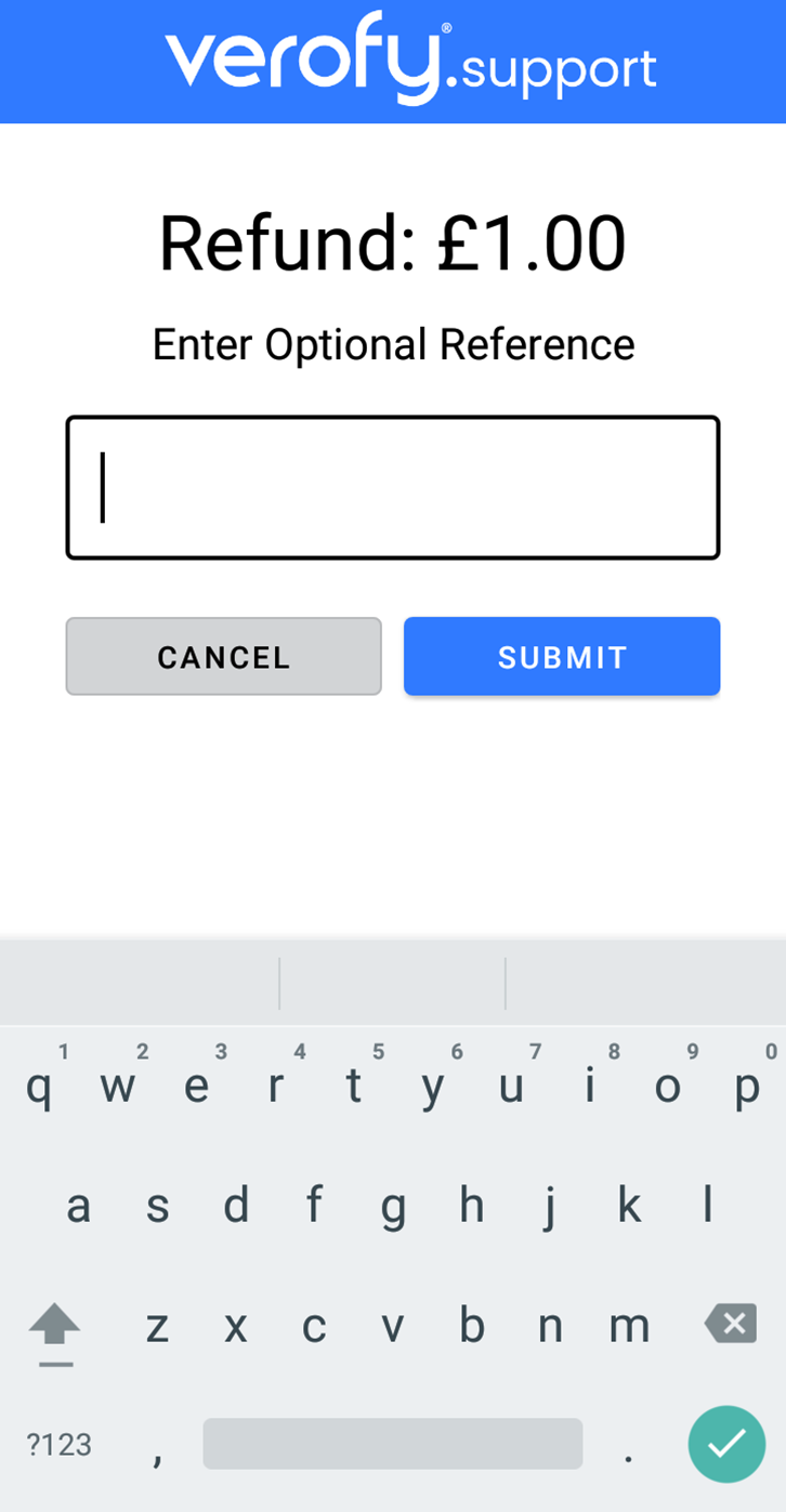 - Next, you'll be asked if you wish to add an Optional Reference to the transaction. If you don't want to add a reference, press submit.