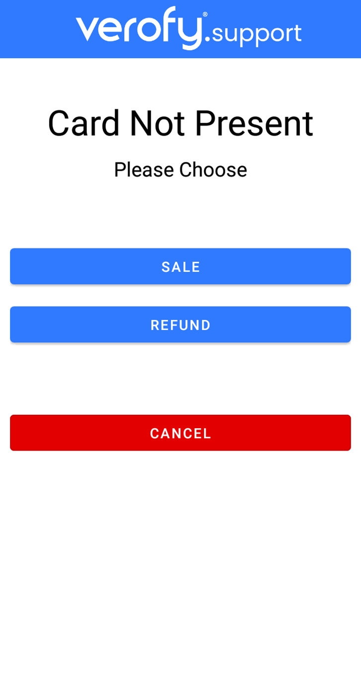 If you don't see the CNP option on your Home screen, you may not have the permissions to take Verofy® Moto payments. Contact us via the message centre in app for more information.