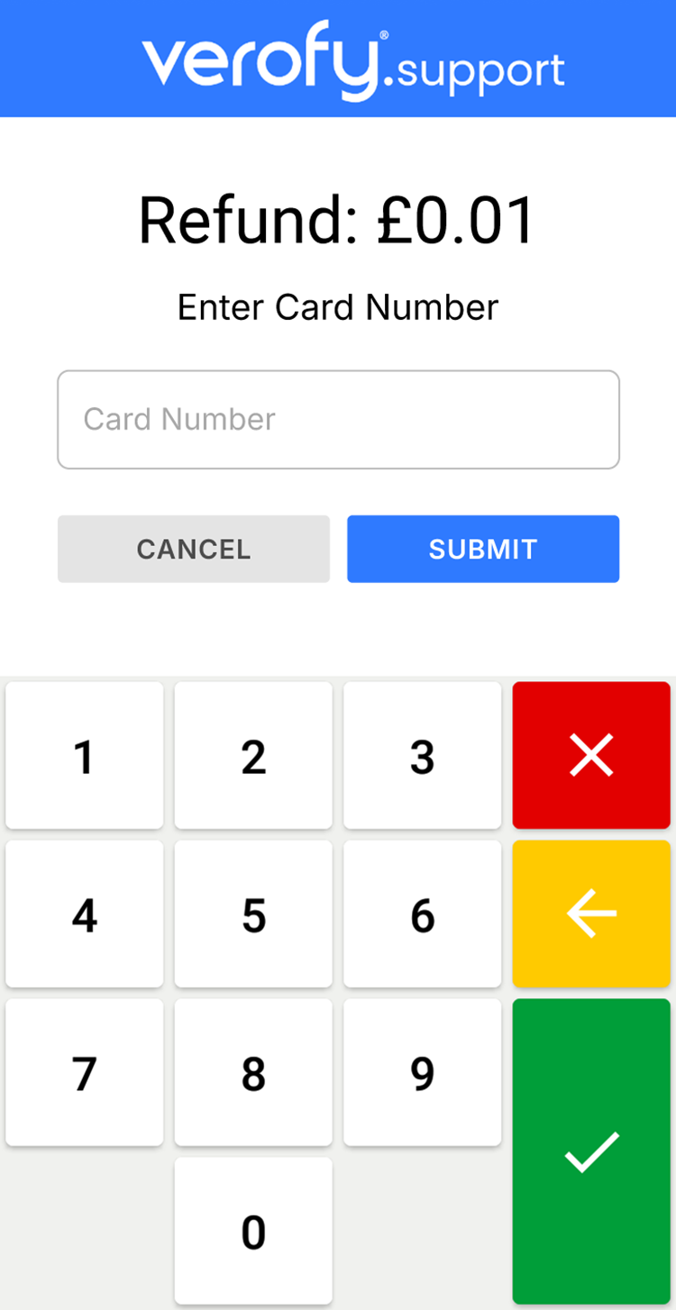 - You'll then need to enter the long 16 digit card number (the customer will need to confirm this to you). Once entered, press submit.