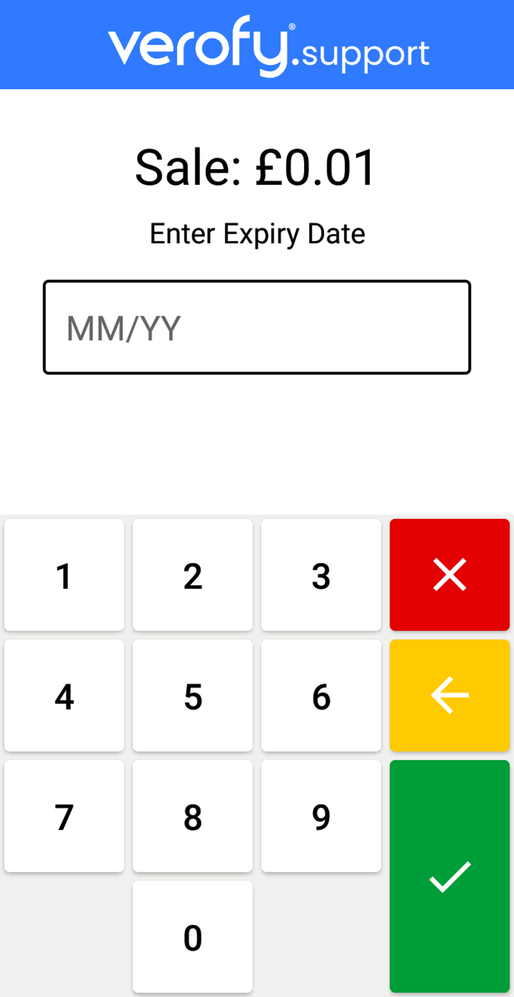- Next, you'll need to enter the expiry date of the card, Once you've done this, press the green tick.