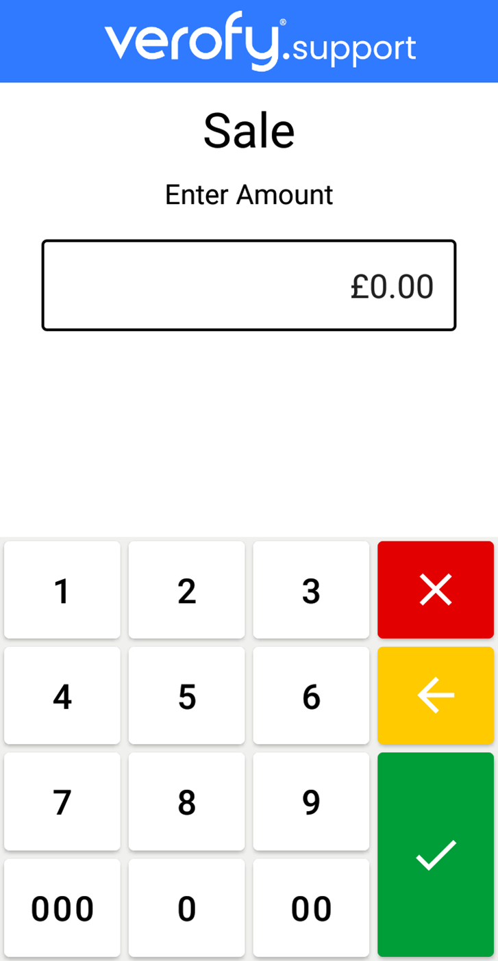 - Enter the amount of the sale using the keypad. When you've entered this, press the green tick.