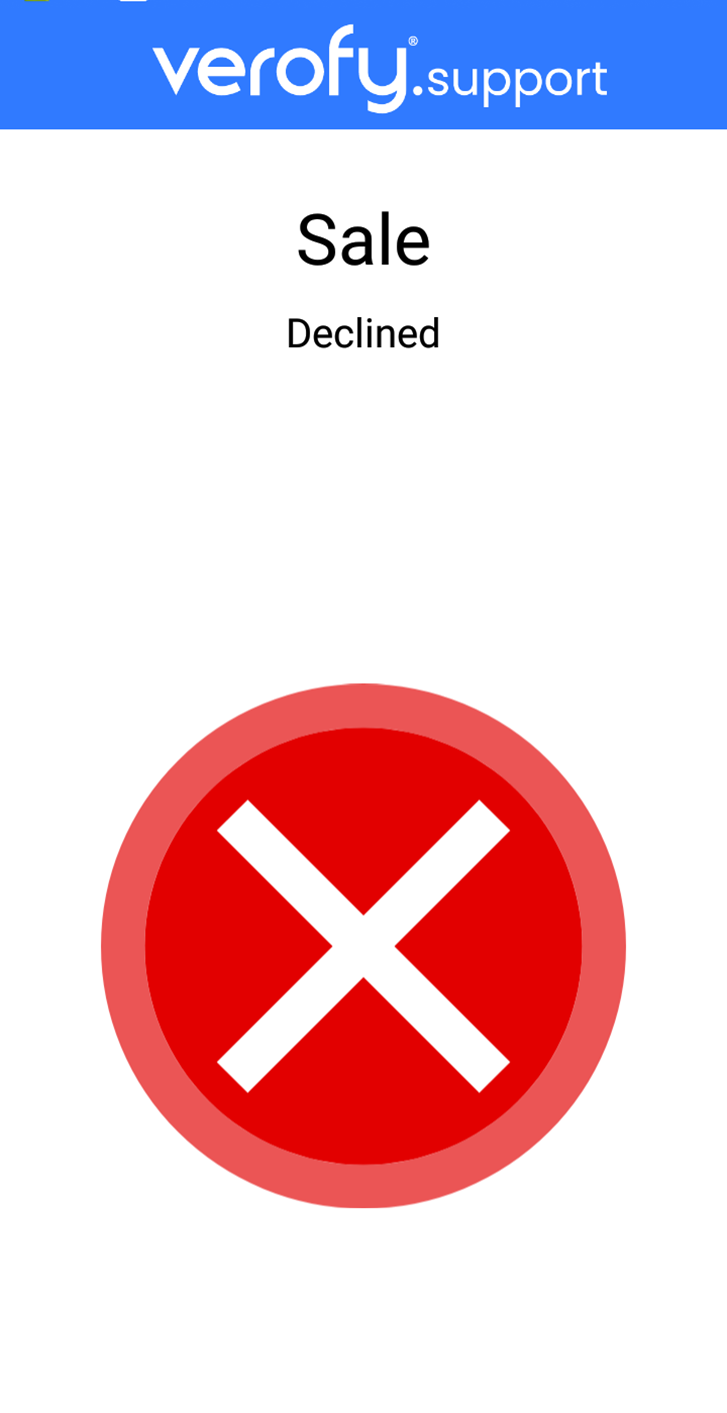 If the payment is unsuccessful, the terminal will show the 'Decline' screen - this means the transaction has not completed successfully.