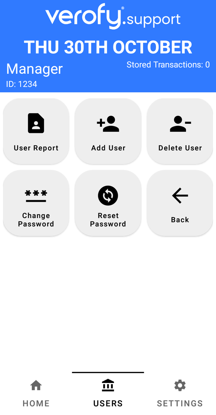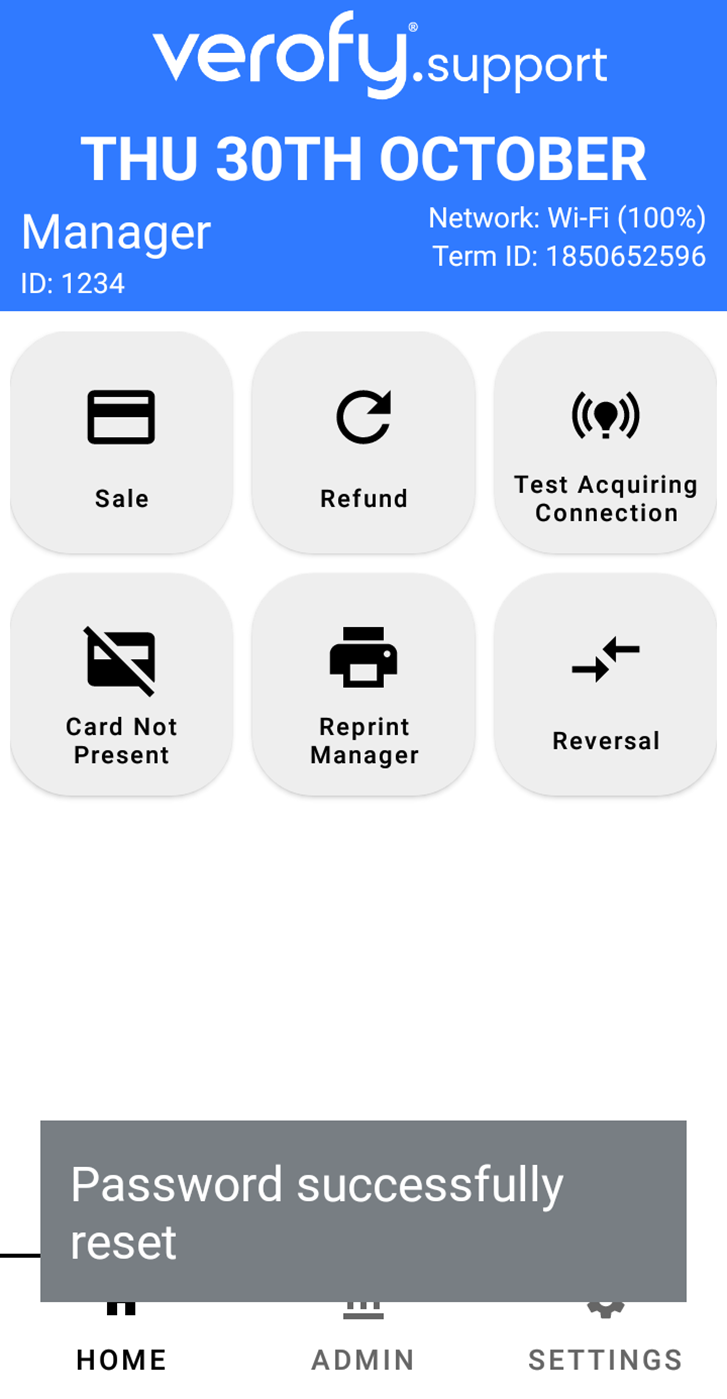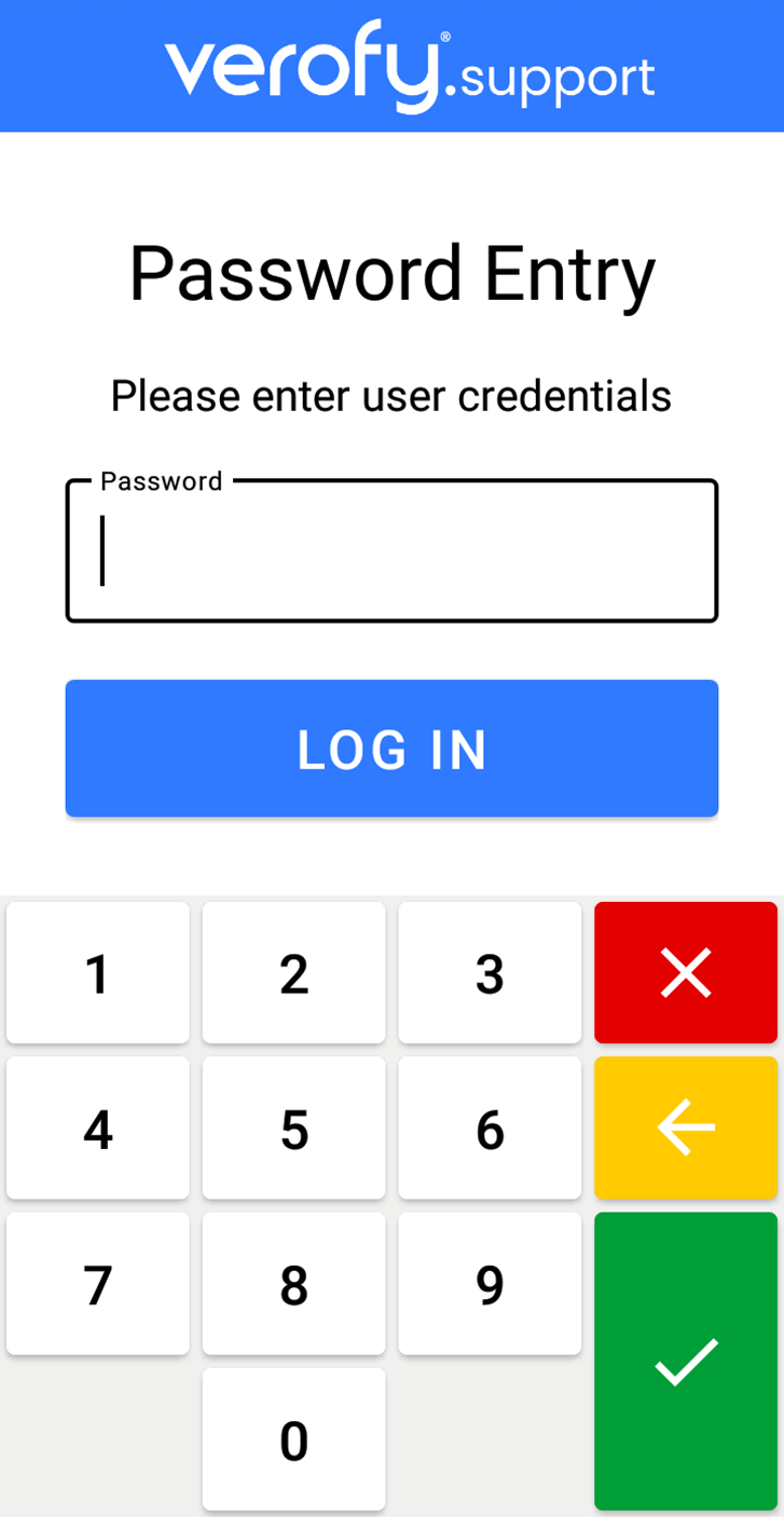 - Your Verofy® Move will ask you to re-confirm the new password. Once you've done this, press the green tick. If the passwords do not match, the terminal will inform you of this.
